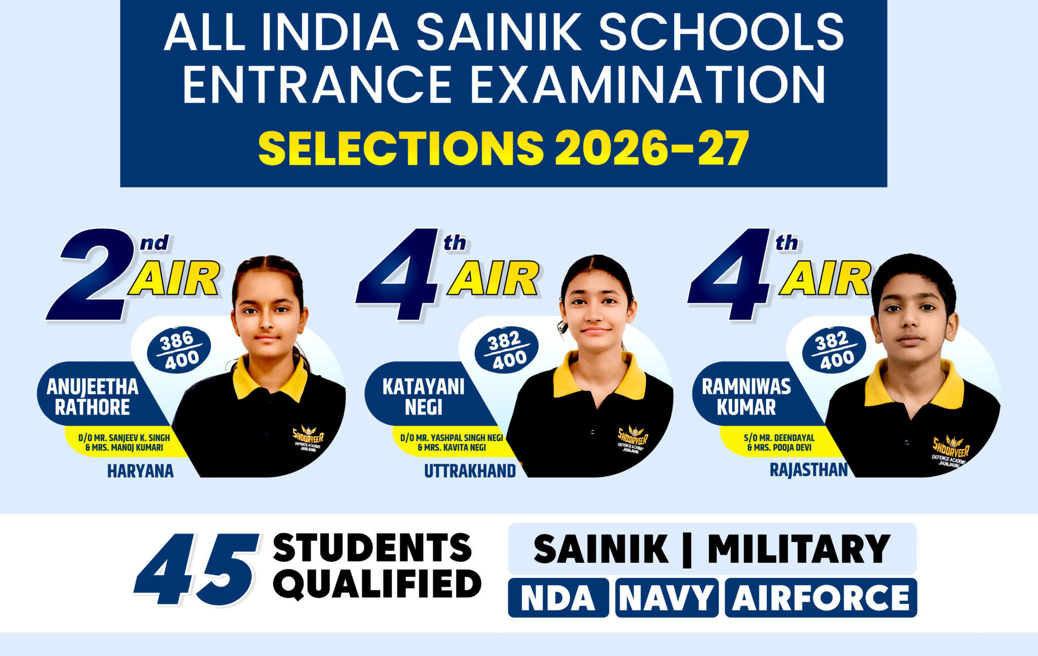 Shoorveer Defence Academy has built a legacy of excellence in Sainik School entrance preparation, with a high percentage of its students securing admission to Sainik Schools across India. Their consistent selection record and inspiring success stories are a testament to their result-driven and holistic training methodology. With a combination of academic excellence, leadership training, and physical fitness, Shoorveer stands out as the Best Sainik Coaching Academy in Rajasthan and one of the top Defence Academies in India.